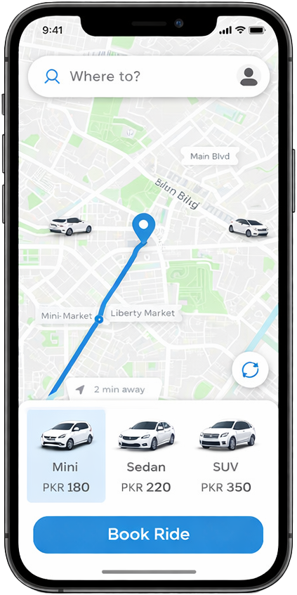 Select Mini, Sedan, or SUV and view fare.